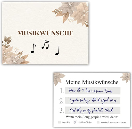 Vollständige Details anzeigen50 Musikwunschkarten Hochzeit Musikwunsch DJ Karten Musikwunschkarten Geburtstag Boho Musikwünsche Musikkarten Partykarten #G02
