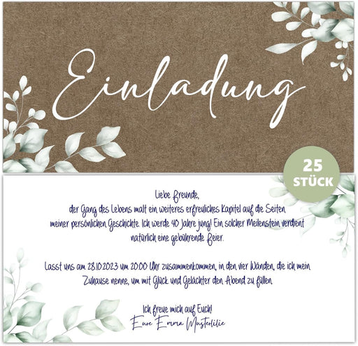 Vollständige Details anzeigen25 Einladungskarten Einladung zur Hochzeit Taufe Einladung Geburtstag 30 40 50 60 70 Kommunion klassisches Design DIN lang ohne Umschläge #B08