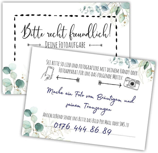 25er Set Fotoaufgabe Eukalyptus Fotospiel Hochzeit fotospiel für gäste hochzeit Geschenkidee Hochzeit Fotoaufgaben Boho #H19