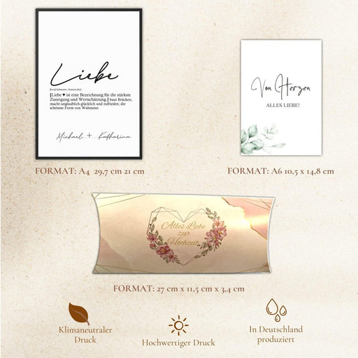 Machen Sie das Geschenk zur Hochzeit zu einem unvergesslichen Erlebnis mit unserem liebevoll designten und personalisierten Kunstdruck. Dieses hoch...