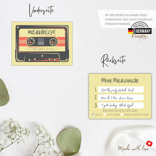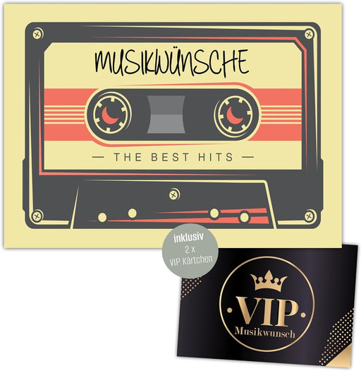 Musikwunschkarten im Retro Kassetten Stil! Verleiht Eurer Feier den ultimativen Schwung mit unseren Musikwunschkarten im charmanten Vintage-Design!...