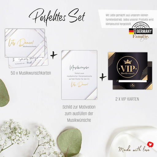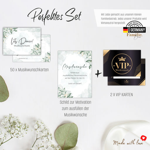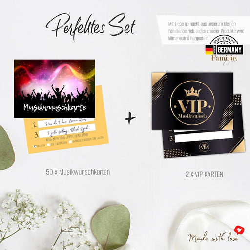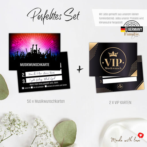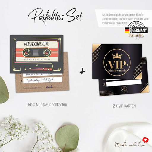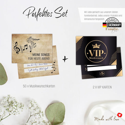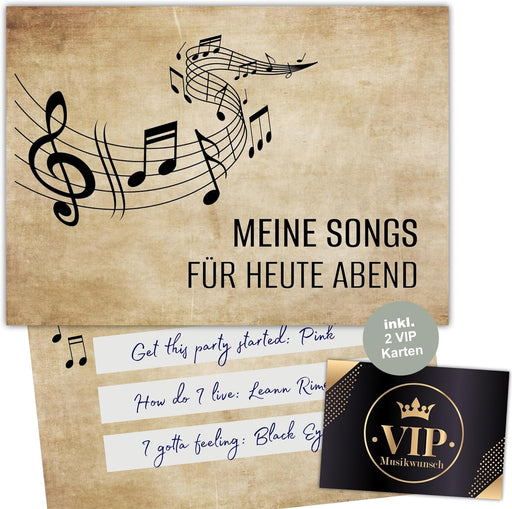 50 Musikwunschkarten inkl. VIP Karten + Motivationsschild