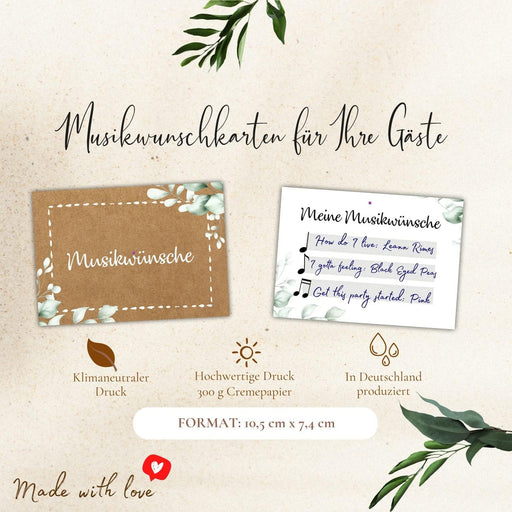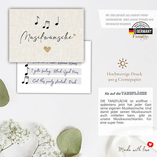 Vollständige Details anzeigen25 Musikwunschkarten Hochzeit | Musikwünsche Partykarten | 300g Crempapier