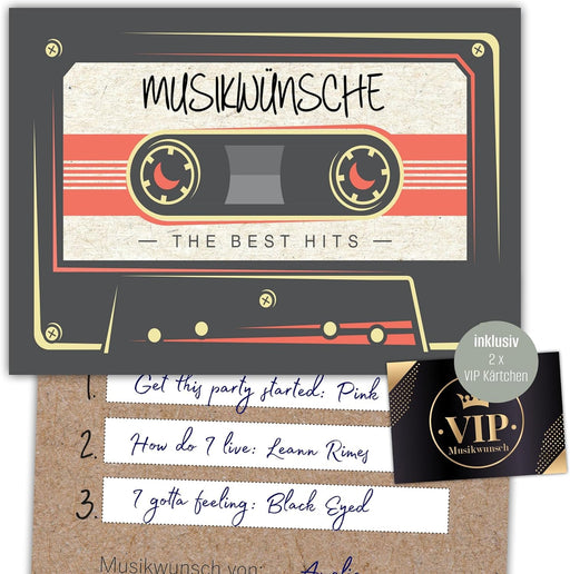 Perfekte Musikwünsche im Retro Kassetten Design Unsere Musikwunschkarten sind das ideale Hilfsmittel für jeden DJ und tragen entscheidend zum Erf...