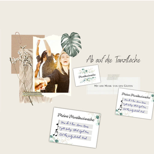 💃🕺 DIE TANZFLÄCHE IST ERÖFFNET: Unsere praktischen Musikwunschkarten ermöglichen es jedem Gast, seine Lieblingslieder einfach mitzuteilen. Verteilt...