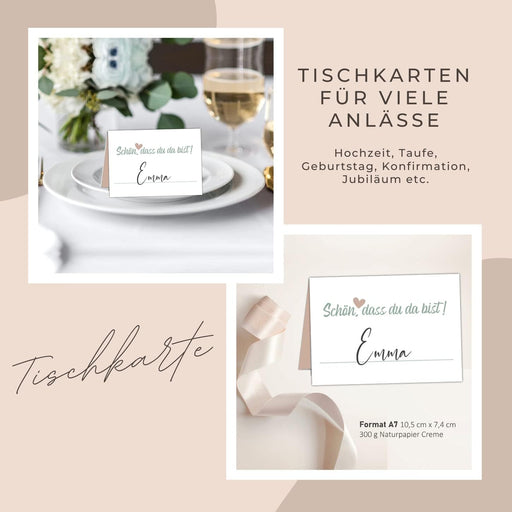 Zauberhafte Tischkarten für Deine Hochzeit Verleihe Deiner Hochzeitstafel einen Hauch von Eleganz mit unseren stilvollen Tischkarten auf edlem 300g...