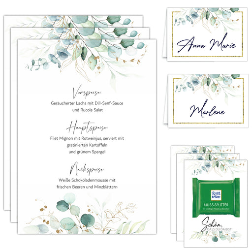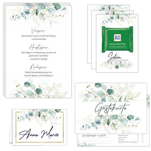 Exklusives Eukalyptus-Set für Deine Feier Mache Deine Veranstaltung zu etwas ganz Besonderem mit unserem eleganten Eukalyptus-Set, das 30 Tischkart...